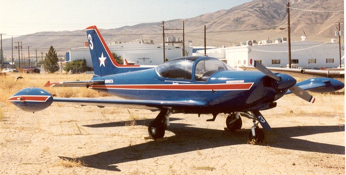 This aircraft belonged to 'Team America'. The very successful aerobatic formation team was formed by Charles 'Chuck' Lischer in 1984 and existed through 1996. While Chuck owned and flew the lead plane number '1' (registered N941TA), team members Brian Sanders and Barney Register owned and flew the plane numbers '3' (NX942TA) and '2' (NX943TA) respectively. N943TA was the first of twelve aircraft manufactured in 1971 for the AF of the Congo and test flown registered as I-SYAA, subsequently it was delivered to the Congo with the serial AT-101.