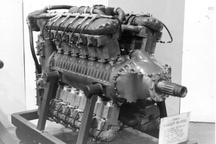 Ranger XH-1850, 24 cylinder air cooled H engine. Having two crankshafts driving a hollow propeller shaft through which a cannon could be fired.